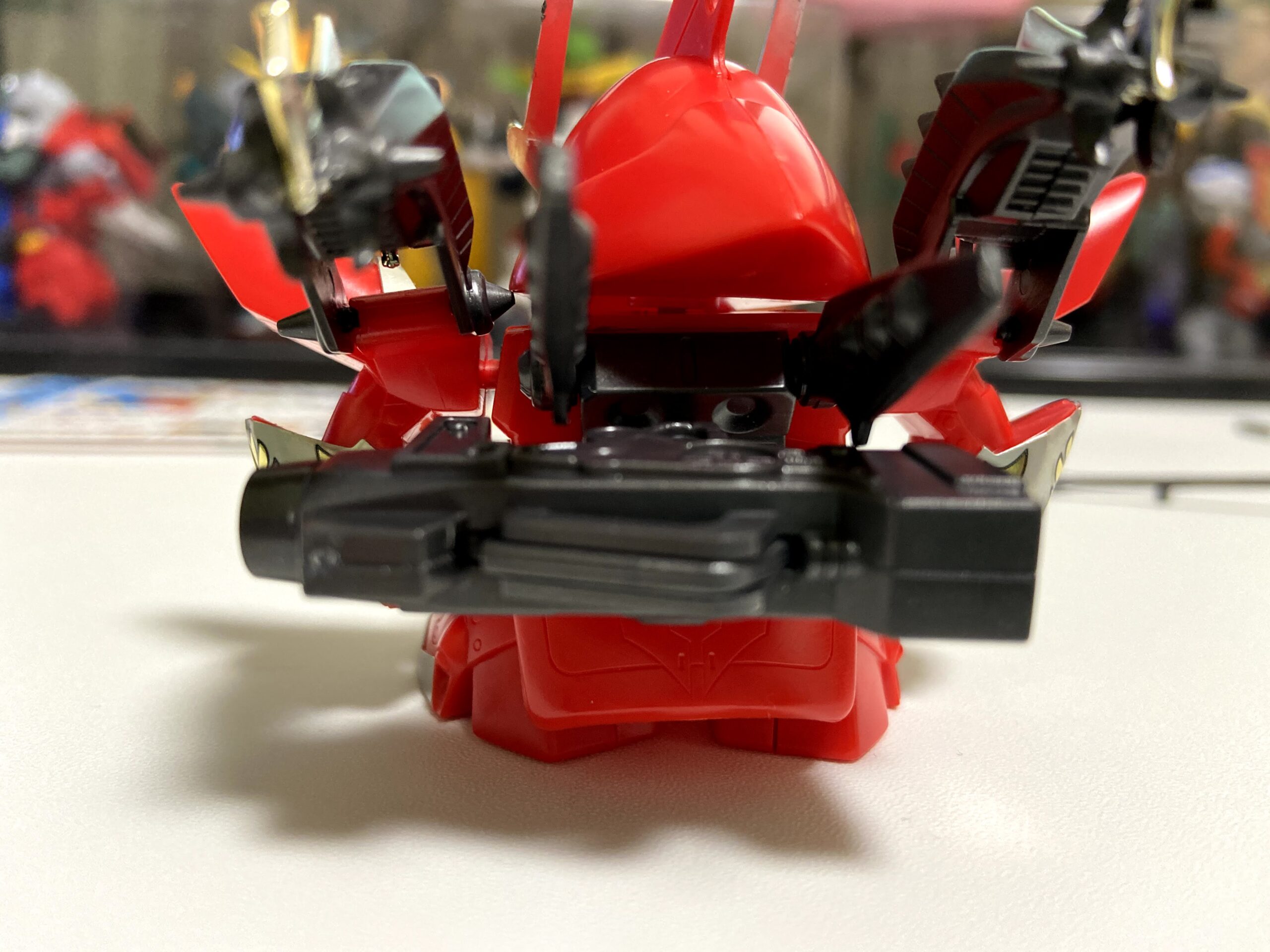 うん、可動範囲はお世辞にも良いとは言えないですが、元がサザビーで重量感があるので結構様になってますよね。