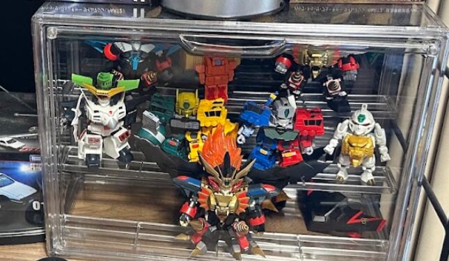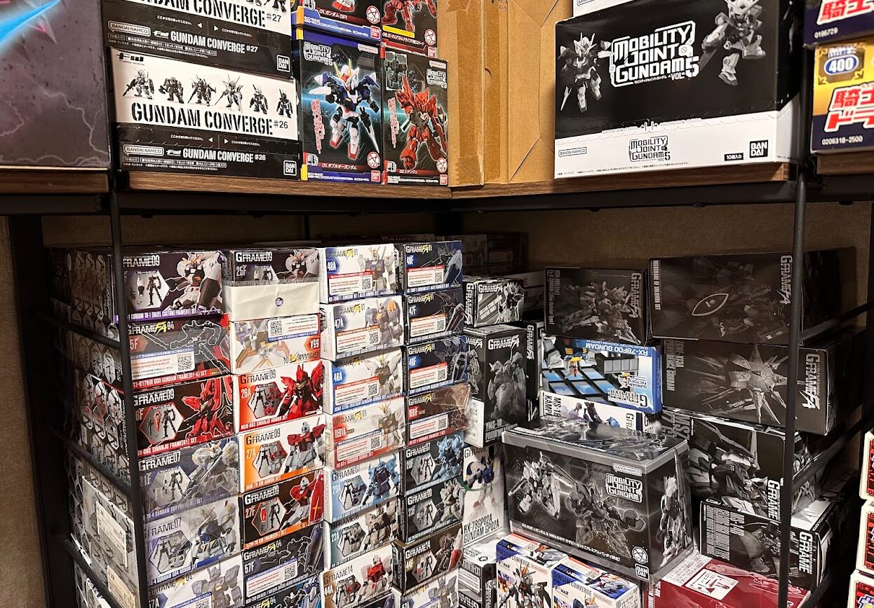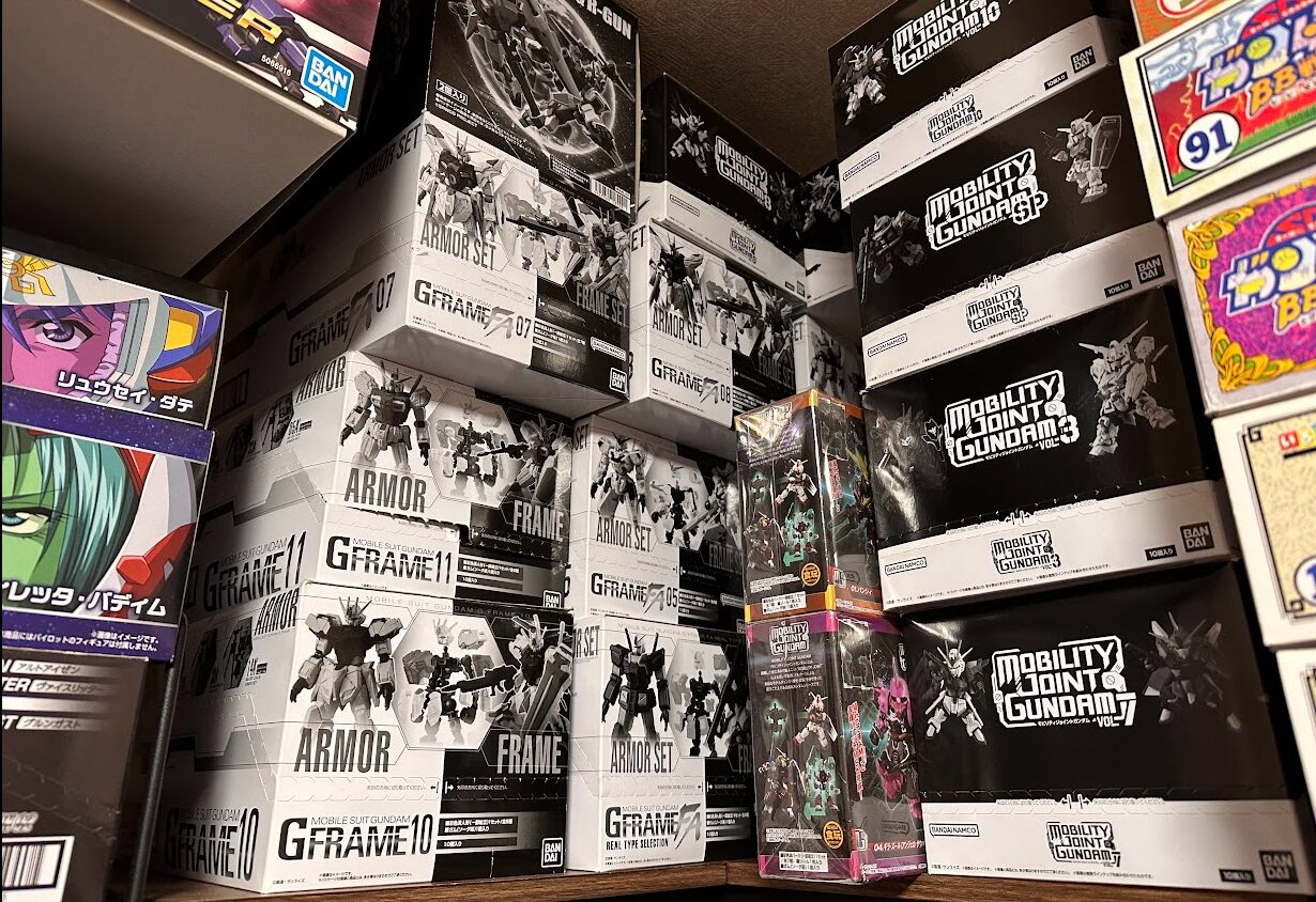 「モビリティジョイント(小型のガンダム食玩)」や、過去に開封してしまったコレクションなどは、そのまま棚に置くと乱雑に見えます。